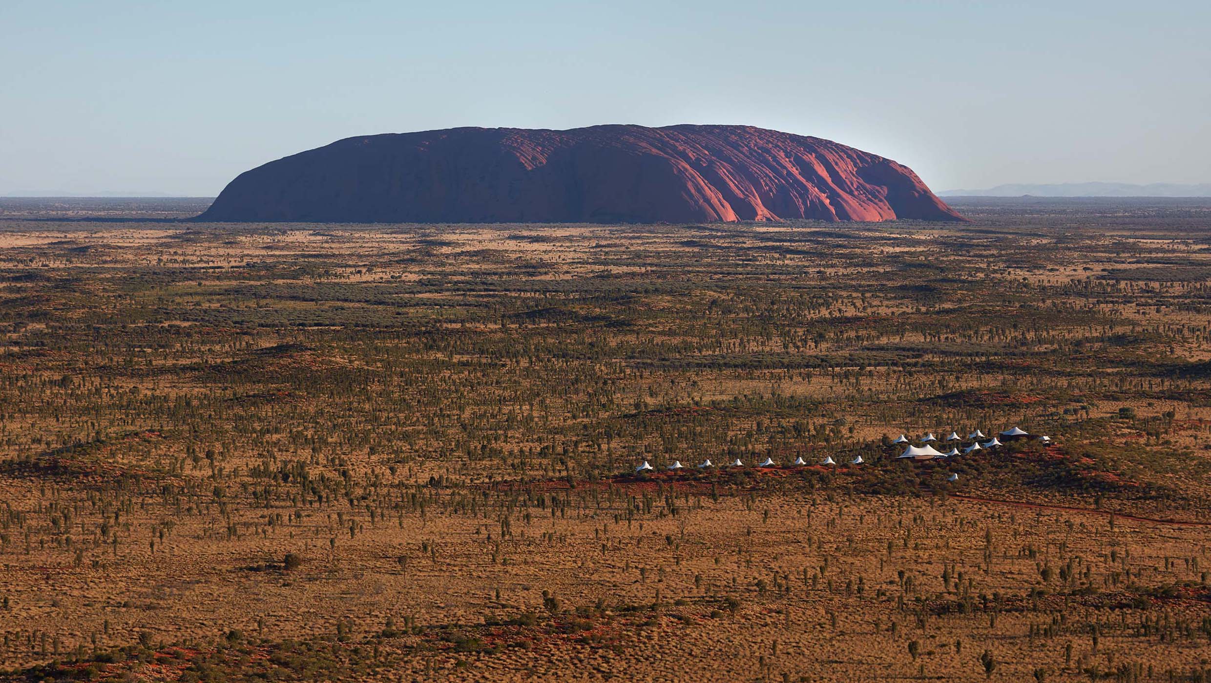 The footprint is light on the earth, the lodge is hunkered low, there is nothing between you and the 600 million-year-old Uluru except red, raw landscape.Susan Kurosawa The Australian